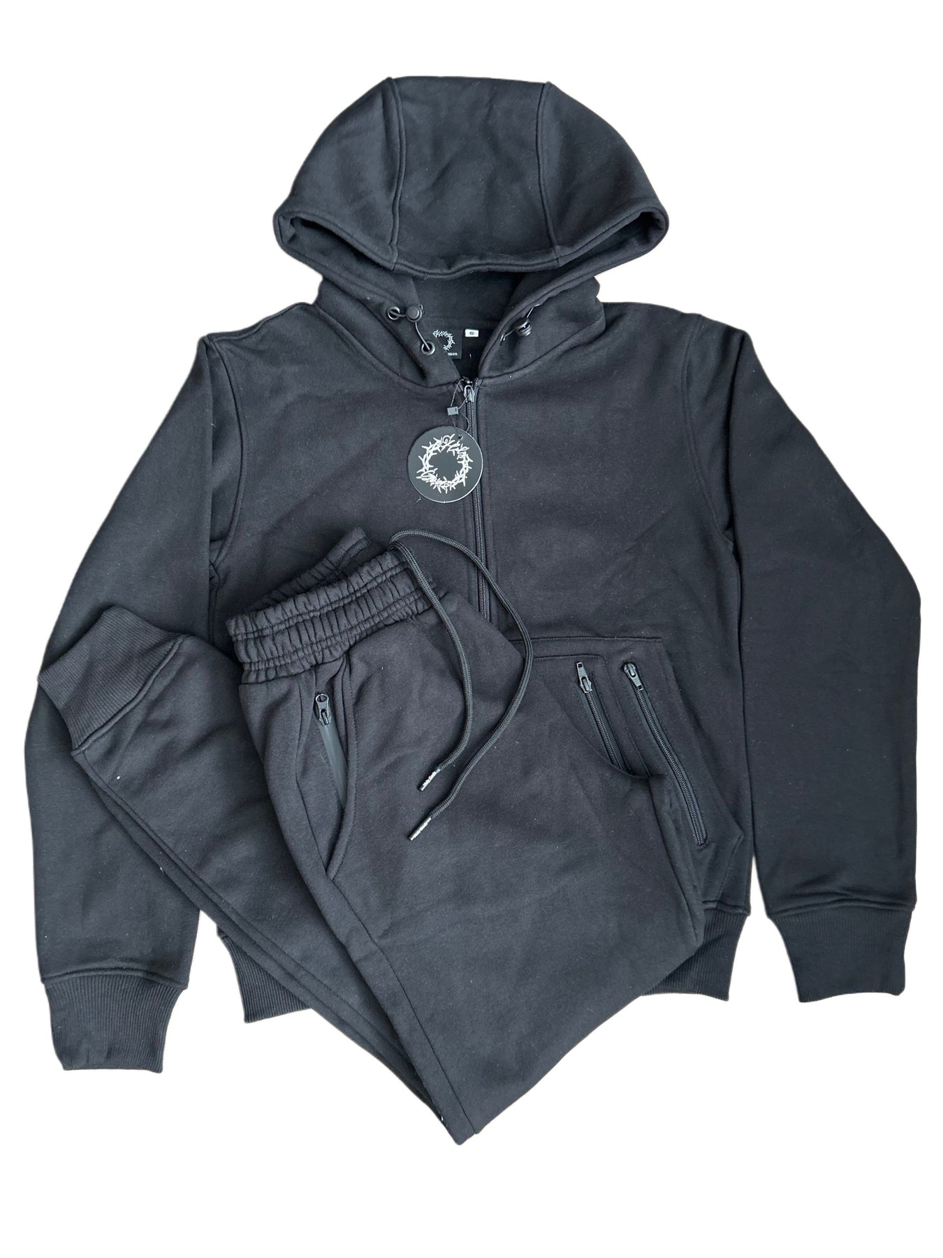 The black Holy Godz Reserved Set was built for the ones who move behind the scenes yet somehow shape everything in front of them. The ones who do not speak first, do not explain often, and do not need validation to know their value. When you wear this, the room changes before you say a word.